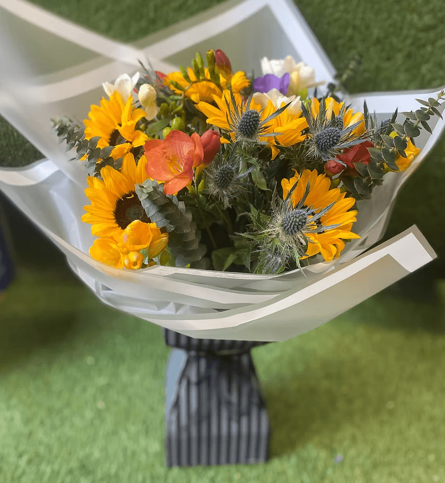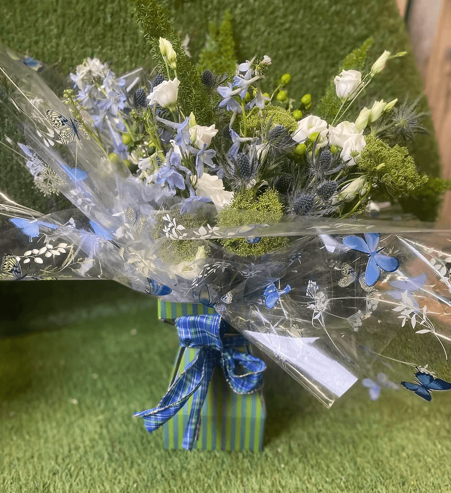 Pictured is a gorgeous autumnal thank-you bouquet. It really shows that you’ve gone above and beyond to thank someone with a bespoke, hand delivered bouquet to brighten their day.